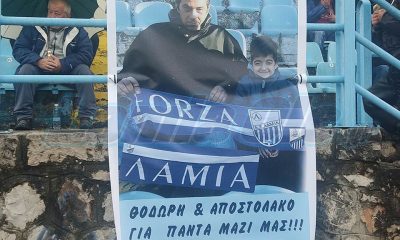 Ρίγος συγκίνησης προκαλεί στους φίλους της Λαμίας ένα πανώ που έχει αναρτηθεί στην κερκίδα των οργανωμένων προς τιμήν του Θόδωρα Καρυωτάκη...